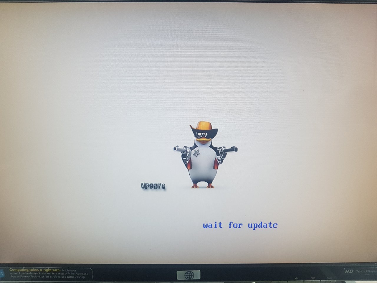 The problem is when the board is powering up, a TUX cowboy image appear with the legend: "Wait for update". After an hour an a half, nothing happens and the image remains there.