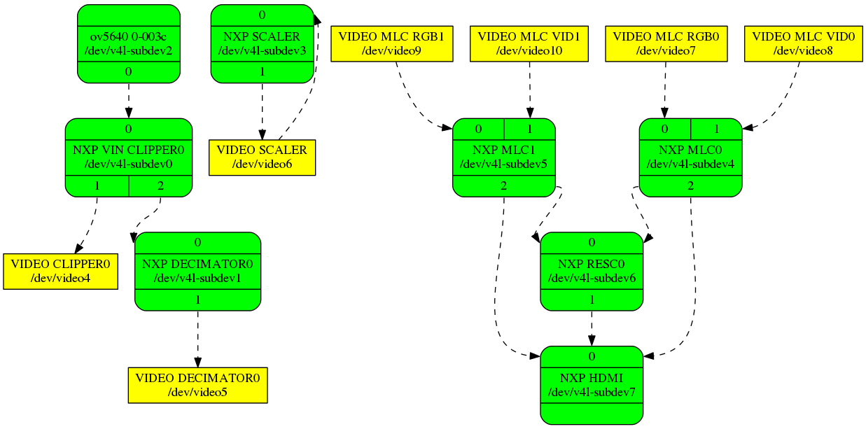 In dmesg I see the probe for the the ov5640 driver gets called and there are many /dev/videoX (X= 4..10), also quite some V4L2 subdevices.
