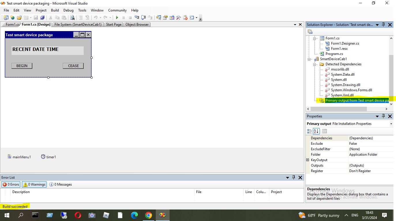 In the project folder of the development PC I notice the folder Debug, in which I found Smart Device Cab1 win rar archive. Also other files related to the cab project.