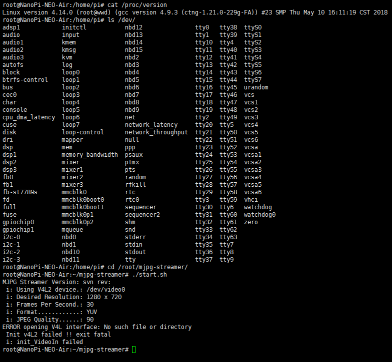 CAM500B is connected, but no /dev/video0 device.