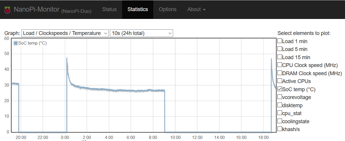 Hi, I use a Nanopi Duo with heatsink as Flightradar 24 receiver at the top ground. It works fine. But sometimes the Duo is not working. I can only interrupt the power supply. Then the temp is very high: